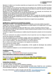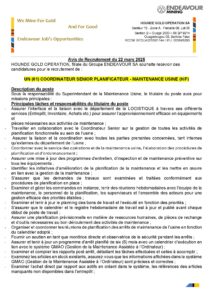 HOUNDE GOLD OPERATION, filiale du Groupe ENDEAVOUR SA souhaite recevoir des candidatures pour le recrutement de : UN (01) COORDINATEUR SENIOR PLANIFICATEUR – MAINTENANCE USINE (H/F)